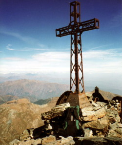 (ca.30m unterhalb) wird die Sicht auf das mächtige Gipfelkreuz möglich (4,5 Std).